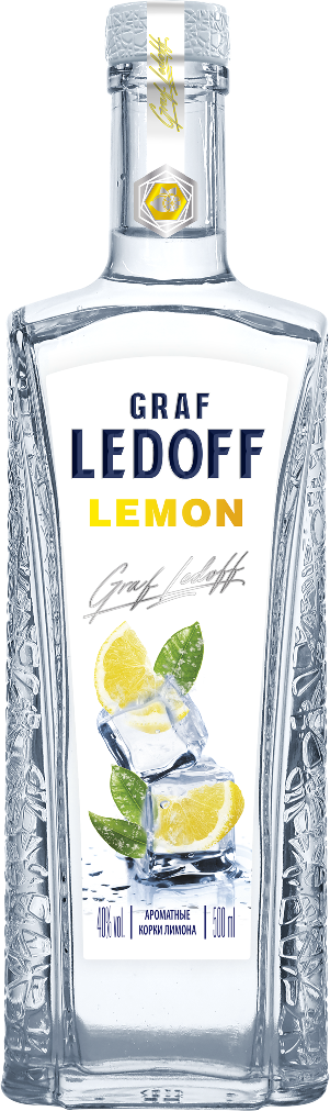 Водка "Graf Ledoff" — один из первых крепких высокоалкогольных напитков Казанского ЛВЗ, созданных на основе спирта "Альфа". Особая водка "Graf Ledoff" Lemon изготавливается с добавлением ароматных лимонных корочек, благодаря чему водка приобретает яркий цитрусовый аромат. Изюминкой водки является ледяная обработка воды, которая максимально убирает из нее вредные микропримеси, позволяя достигнуть высшей степени чистоты вкуса конечного продукта. Оригинальный колпачок с покрытием софт-тач и специальным дозирующим устройством защищает водку от подделки и ставит ее на один уровень с премиальными марками крепких спиртных напитков.