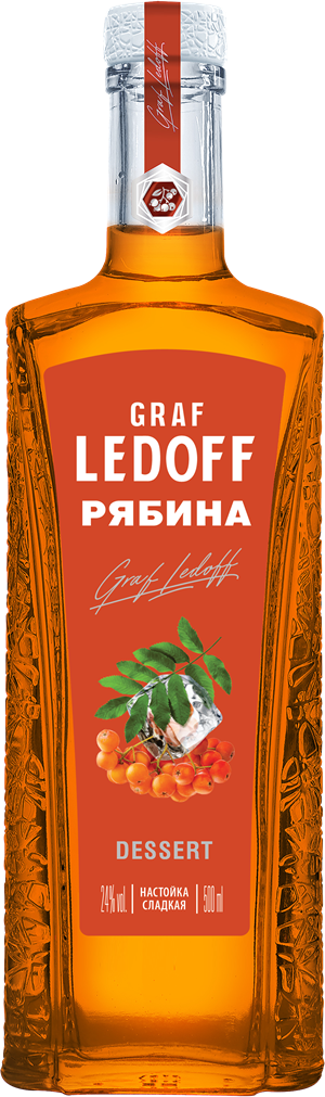 Сладкая настойка "Граф Ледофф Десерт" Рябина на коньяке — новинка бренда "Граф Ледофф". Настойка обладает душистым ароматом, ярко выраженным вкусом с легкой терпкостью рябиновых ноток и приятными коньячными тонами и насыщенным оранжевым цветом. В состав настойки входит спирт класса "Альфа", морс рябиновый спиртованный и коньяк. В сочетании, эти ингредиенты создают очень благородный и мягкий вкус с легкой сладостью, который, несомненно, подарит отличное настроение.