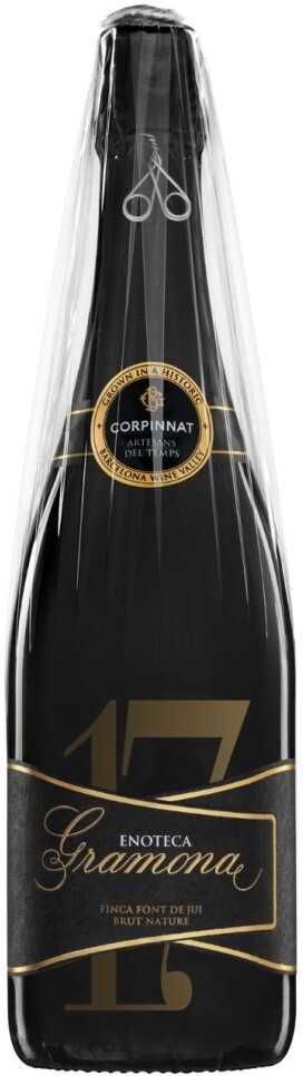 Gramona, Enoteca, Corpinnat, Brut Nature — чарующее игристое вино с широким спектром ароматов, очевидных с самого первого мига, поразительно чистым и свежим вкусом. Сорт Чарелло обладает необычайной структурой и кислотностью и вместе с Макабео впечатляющим образом выражает интенсивность аромата, утонченность и элегантность, в результате чего получается хорошо сбалансированное игристое вино, богатое нюансами и с кислотностью, которая сохраняется в течение многих лет. Виноград выращивается на виноградниках поместья Font de Jui. Они простираются от реки Анойя до холма Мас Эскорпи, с которого открывается вид на город Сан-Садурни и его южные склоны. Виноградники расположены на высоте 100-350 метров над уровнем моря. Почвы — песчаные вдоль реки и очень каменистые на более высоких и сухих участках. На виноградниках применяется органический и биодинамический подход, что обогащает почвы и помогает растениям лучше адаптироваться к изменению климата.