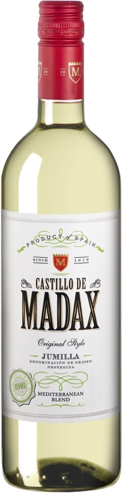 Освежающее белое сухое вино "Castillo de Madax" Blanco изготавливается из винограда сортов Макабео и Айрен, который выращивается в солнечной Хумилье. Почвы виноградников преимущественно глинисто-известковые. Низкая урожайность позволяет получить виноград высокого качества. Вино производится по классической для белых вин технологии. Урожай собирается исключительно вручную, когда ягоды достигают оптимального уровня спелости. Затем плоды бережно доставляются на винодельню, где подвергаются мацерации на кожице от 10 до 15 дней. Ферментация проводится при контролируемой температуре. Вино прекрасно в качестве аперитива, в сочетании с легкими салатами и закусками, мясом птицы и рыбой.