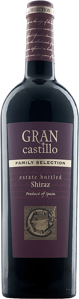 Gran Castillo, "Family Selection" Shiraz — очень приятное красное вино, с интенсивным ароматом и мягким, слегка сладковатым вкусом. Свежие ягодные тона ежевики и красной смородины формируют комплексный аромат, а во вкусе доминируют фруктовые мотивы. Для создания вина используется виноград сорта Шираз, выращенный на виноградниках солнечной Валенсии, где преобладает теплый средиземноморский климат, а почвы преимущественно глинистые. Вино производится традиционным способом. После ферментации, вино выдерживается 4 месяца в дубовых бочках, благодаря чему приобретает приятную мягкость и бархатистость. Высокое качество "Family Selection" Shiraz неоднократно отмечено наградами на международных конкурсах и дегустациях.