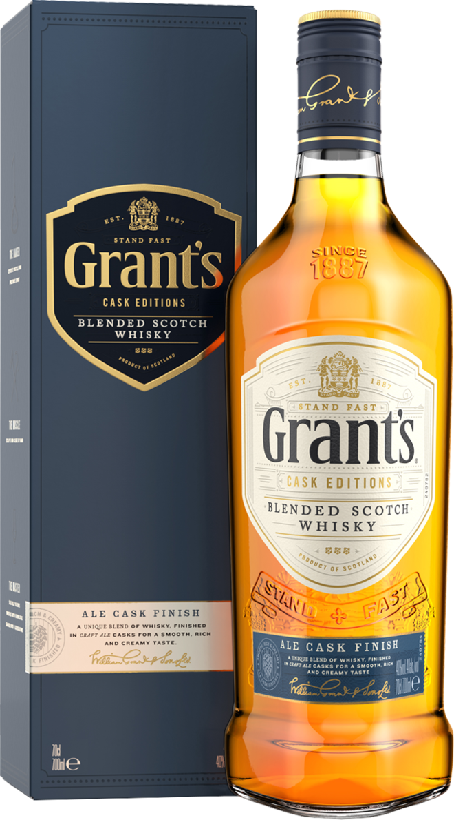 Grant's, Ale Cask Finish, наверное, один из самых необыкновенных виски. Ведь конечный этап и выдержка напитка проходит в пивных бочках. Три месяца виски проводит в емкостях из-под эдинбургского эля. Эль производят из обжаренного солода, используя высокую температуру при брожении. Поэтому у виски такой удивительный вкус, сочетающий в себе свежесть пива, сочность фруктов и терпкие дымные нотки с нежным сливочным ароматом.