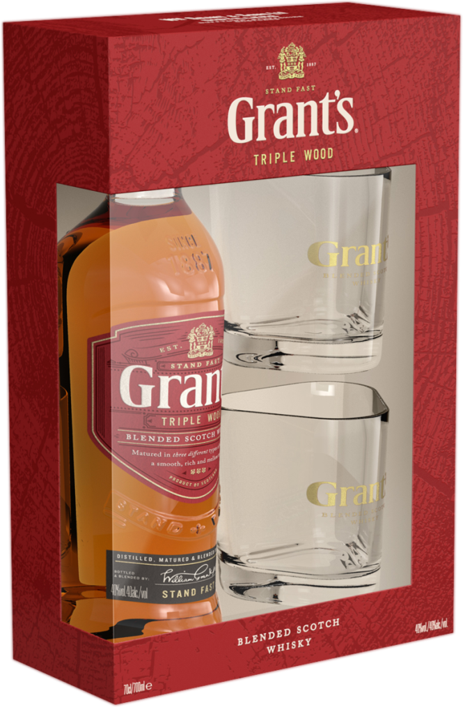 Виски Grant's, Triple Wood, 3 Years Old, with 2 glasses in gift box, 0.7 л.