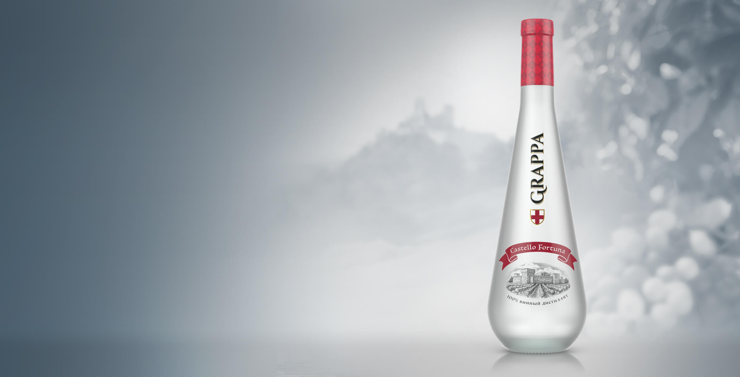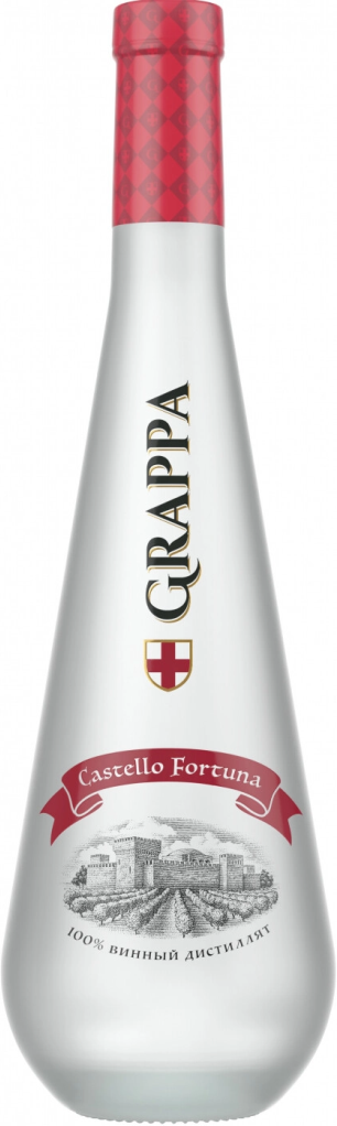 Grappa, Castello Fortuna — уникальная граппа, изготовленная не из виноградных выжимок, как это обычно принято, а из отборного винного дистиллята и артезианской воды из собственной скважины предприятия. "Голова" и "хвост" дистиллята отсекаются, и остается только самая чистая часть продукта — "сердце". Такая технология гарантирует высочайшее качество готового продукта. В результате получается граппа с исключительно мягким и благородным вкусом. Граппа хорошо сочетается с горячими блюдами, десертами и сладкими фруктами, также ее можно подать в чистом виде, как дижестив, со льдом или использовать для приготовления алкогольных коктейлей.