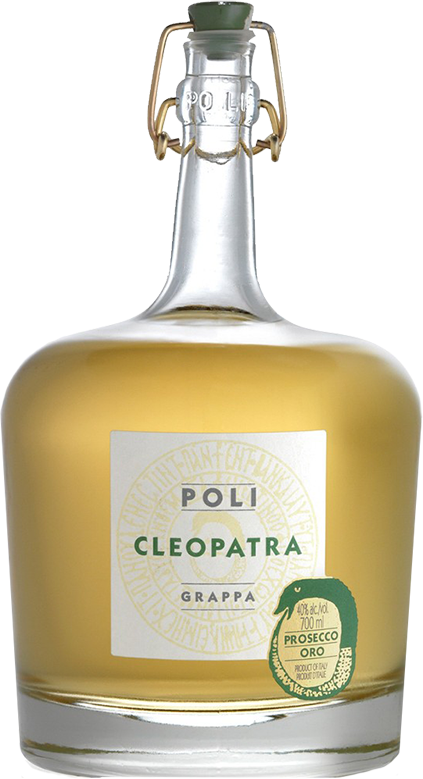 "Cleopatra" Prosecco Oro — граппа, созданная из выжимки винограда сорта Глера, который исполььзуется для производства игристого вина Просекко из Valdobbiadene. Выдержка граппы осуществляется в барриках из французского дуба и длится 1 год. В названии граппы — имя женщины-алхимика Клеопатры из Древнего Египта, которая наряду с древними мудрецами пыталась постичь тайны мироздания, создать философский камень, с помощью которого можно превращать обычный металл в золото.
