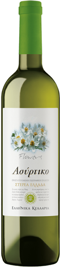 Greek Wine Cellars, Flowers, Assyrtiko — свежее белое вино из винограда сорта Ассиртико, который выращивается на виноградниках Центральной Греции. Область охватывает южную часть континентальной Греции, к северу от полуострова Пелопоннес и к югу от Фессалии и Эпира. Эгейское море образует восточное побережье Центральной Греции, а Ионическое — западное. По всему региону разбросано более 20 отдельных винодельческих зон, что позволяет производить вина в очень разных стилях.