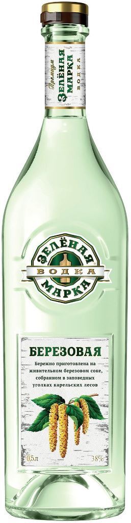 Водка "Зелёная Марка" Березовая производится из чистейшей артезианской воды и спирта класса "Люкс" с добавлением сахарного сиропа, березового сока, спиртованных настоев березовых почек и сушеных яблок. Живительный березовый сок, который формирует уникальный характер водки, собирается в заповедных уголках карельских лесов. Водка выдерживается в специальных экстракторах и подвергается фильтрации в несколько этапов, пока не станет прозрачного цвета. Рекомендуется подавать водку в охлажденном виде к сытным горячим блюдам русской кухни, закускам, маринадам и соленьям.