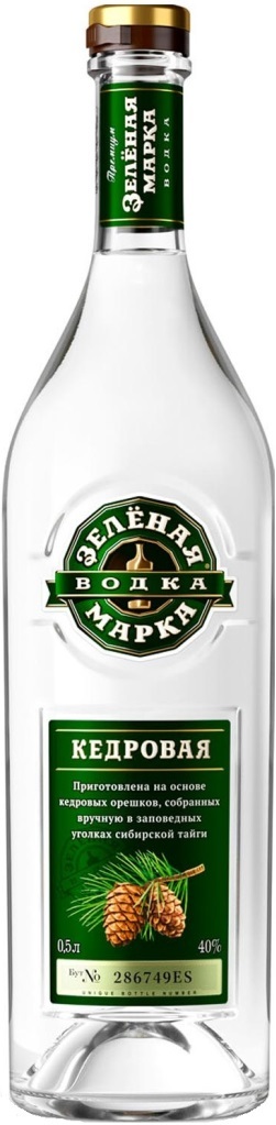 Зелёная Марка, Кедровая — мягкая водка с тонами кедра во вкусе и аромате, созданная в России. В ее состав входит чистая питьевая вода, ректифицированный этиловый спирт, сироп из сахара и фильтрованный настой кедрового ореха. Этот настой готовится в специальных емкостях на протяжении 10 дней, после чего добавляется в водку, придавая ей нюансы натуральных эфирных масел российского кедра.