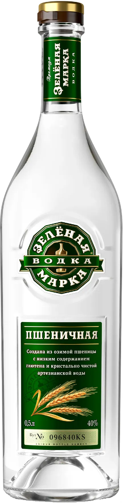 Водка "Зеленая Марка" Пшеничная производится из озимой пшеницы с низким содержанием глютена и чистейшей артезианской воды. В ее основе находится спирт класса Люкс, настой пшеницы и спельты, сахарный сироп, пищевая молочная кислота и натрий двууглекислый. Водка выдерживается в специальных экстракторах и поддается фильтрации в несколько этапов, пока не станет прозрачного цвета. Рекомендуется подавать напиток в охлажденном виде к жирным и острым горячим блюдам русской, украинской и белорусской кухни, икре и соленьям.