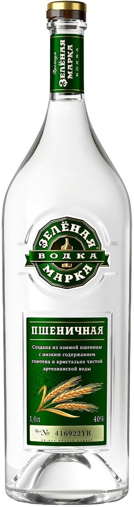 Водка "Зеленая Марка" Пшеничная производится из озимой пшеницы с низким содержанием глютена и чистейшей артезианской воды. В ее основе находится спирт класса Люкс, настой пшеницы и спельты, сахарный сироп, пищевая молочная кислота и натрий двууглекислый. Водка выдерживается в специальных экстракторах и поддается фильтрации в несколько этапов, пока не станет прозрачного цвета. Рекомендуется подавать напиток в охлажденном виде к жирным и острым горячим блюдам русской, украинской и белорусской кухни, икре и соленьям.
