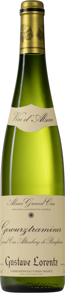 Gustave Lorentz, Gewurztraminer Grand Cru, Altenberg de Bergheim, Vieilles Vignes — прекрасный пример Гевюрцтраминера высокого класса. Изготавливаемый из урожая со старых лоз, он демонстрирует большую глубину, удивительную силу и насыщенную ароматическую палитру. Гран Крю "Альтенберг" расположен на южной стороне склона крутого холма Грасберг, на высоте от 220 до 320 метров. Южная экспозиция виноградника, теплый микроклимат, умеренная влажность и каменистая красная почва, богатая ископаемыми, способствуют получению спелого, сочного, зрелого винограда. Винификация проходит по классическому методу. Потенциал хранения вина составляет 16-20 лет.