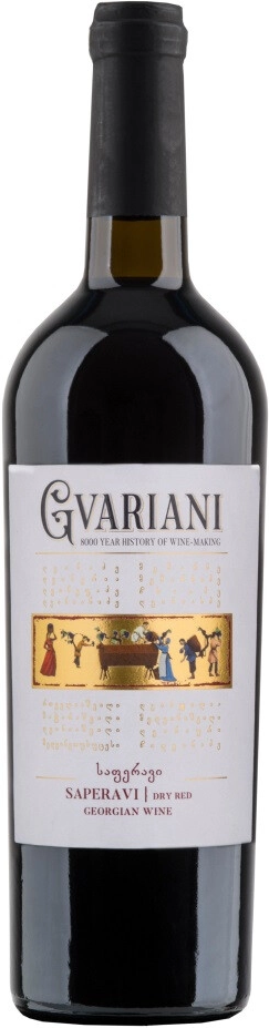 Gvariani, Saperavi — ординарное красное сухое вино, для изготовления которого используют отборный виноград сорта Саперави, одного из самых значимых в Грузии. Саперави представляет собой позднеспелый темнокожий сорт с розовой мякотью. Его название переводится с грузинского как "краски, красящий", что объясняет его интенсивный цвет. Характерная кислотность винограда делает его идеальным для моносортовых вин. Благоприятные геоклиматические условия Кахетии позволяют Саперави максимально раскрыть свой потенциал. Процесс винификации протекает по традиционному методу производства красных сухих вин.