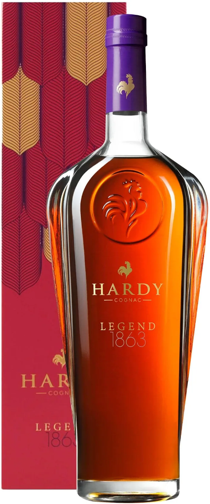 Hardy "Legend 1863" — это дань памяти происхождению коньяка и семье Hardy, члены которой на протяжении более 150 лет дарят миру великолепные коньяки. Этот коньяк — мастерский бленд лучших коньячных спиртов из регионов Grande Champagne, Petite Champagne и Borderies, выдержанных от 2 до 12 лет в бочках из лимузенского дуба.