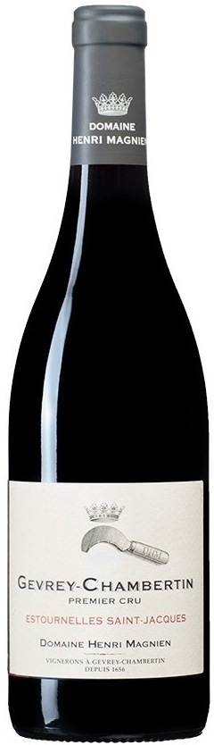 Domaine Henri Magnien, Gevrey-Chambertin Premier Cru, Estournelles Saint-Jacques — изысканное красное сухое вино, созданное из винограда сорта Пино Нуар, который собирается с первоклассного органического виноградника "Эстурнель Сен-Жак" класса Премье Крю, расположенного прямо над "Лаво Сен-Жак". Из-за прохладного климата и легких галечных почв вина из урожая с "Эстурнель Сен-Жак" получаются нежными, но крепкими. В отличие от "Лаво Сен-Жак", это вино можно употреблять молодым, практически сразу после выпуска. При этом потенциал хранения вина составляет не менее 20 лет.