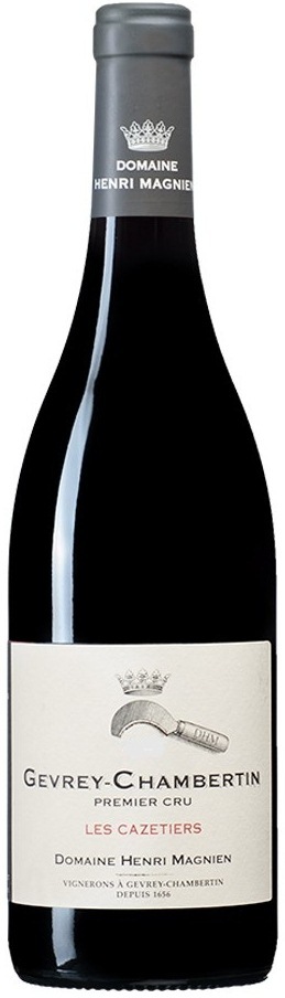 Domaine Henri Magnien, Gevrey-Chambertin Premier Cru, Les Cazetiers — элегантное красное сухое вино, созданное из винограда сорта Пино Нуар, который собирается с виноградника "Les Cazetiers", самого известного и выдающегося 1-er Cru хозяйства. Лозы Пино Нуар на участке "Les Cazetiers", расположенном на крутом известково-мергелевом склоне, обращенном на восток, дают очень низкий урожай. Вина с участка "Les Cazetiers" часто сравнивают с "Кло-Сен-Жак" и отмечают, что "Cazetiers" с его насыщенностью, комплексностью танинов и достаточно низкой кислотностью гораздо более привлекательны уже в молодом возрасте, тогда как "Кло-Сен-Жак" на этой стадии является "закрытым". Сравнение производится не случайно, поскольку виноградники примыкают друг к другу и демонстрируют прекрасный пример того, как отличия в почве и микроклимате даже двух соседних виноградников отражаются на относительно схожих, с точки зрения производства, винах.