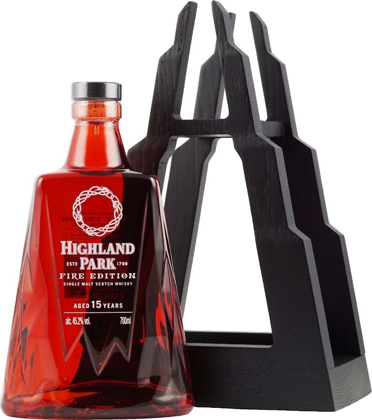 Виски Highland Park, "Fire Edition" 15 Years Old выдержан в основном в бочках из-под портвейна в течение 15 лет и представлен ограниченным тиражом в 28000 экземпляров.