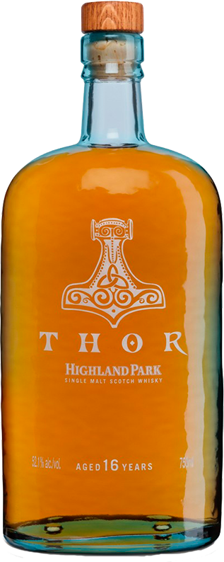 Highland Park "Thor" назван в честь одного из мифических богов, которым поклонялись викинги — Тора — бога грома, бури и плодородия. На бутылке виски изображено оружие Тора — молот Мьёльнир (Mjolnir).