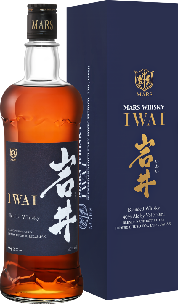 Hombo Shuzo, Iwai — интересный японский купажированный виски с тонами ванили, груши, личи и дуба во вкусе и аромате. На создание виски владельцев компании Хомбо Сюдзо вдохновил бурбон. Купаж виски составлен из кукурузных спиртов, а также солодового дистиллята, выдержанных в бочках из-под бурбона не менее трех лет. Изготовление виски проходит на винокурне Mars Shinshu, самой высокогорной винокурне Японии, расположенной в живописных районах японских Альп на высоте 798 метров над уровнем моря.