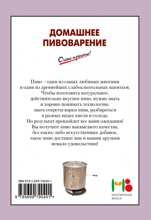 Удобная серия книг, содержащих более 50 рецептов! Простые, доступные ингредиенты, понятные шаги приготовления. В этой книге вы найдете рецепты приготовления всеми любимого пива. В домашних условиях этот напиток получается насыщенным, ароматным, натуральным. Таким, каким должен быть! В книге вы найдете разнообразные технологии, секреты и с помощью них получите пиво потрясающего качества.