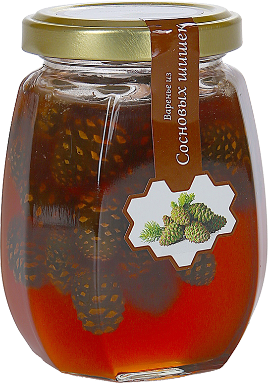 Состав: молодые сосновые шишки, сахар-песок, вода.