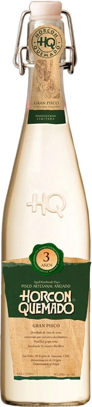 Horcon Quemado, Grand Pisco 3 Anos — чилийская виноградная водка, для изготовления которой используют виноград сортов Москатель Александрийский, Москатель Розовый и Москатель Австрийский. Виноград выращивается под жарким солнцем Атакамы в долинах и на холмах Сан Феликс. Виноград собирается только по достижении ягодами оптимальной сахаристости. Полученное после ферментации в бетонных чанах вино перегоняется в старинном медном кубе. Чистый и ароматный дистиллят выдерживается на протяжении 3-х лет в бочках из американского дуба. Длительная выдержка формирует уникальный характер писко. Перед розливом в бутылки писко обязательно "отдыхает" не менее 60 дней.
