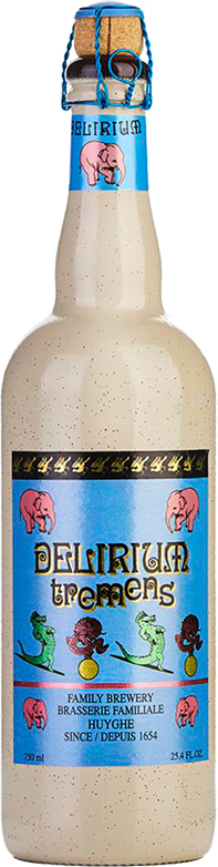 Знаменитая сегодня во всем мире марка пива Делириум Тременс / Delirium Tremens появилась 26-го декабря 1989 года. Оригинальная бутылка, которая напоминает Кельнскую керамику и красочная этикетка, способствют успеху этого пива. На этикетке изображены различные стадии "Белой горячки", сначала это розовый слон, потом зеленый крокодил, чудовища и наконец ужасающие птицы, как из фильма Хичкока. Конечно все предпочитают находится на первой стадии - с розовым слоном. Бокал с розовым слоном помогает достигнуть этой стадии легко.