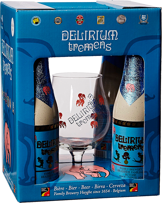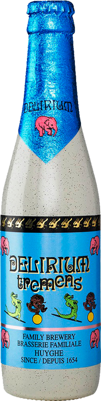 Знаменитая сегодня во всем мире марка пива Делириум Тременс / Delirium Tremens появилась 26-го декабря 1989 года. Оригинальная бутылка, которая напоминает Кельнскую керамику и красочная этикетка, способствют успеху этого пива. На этикетке изображены различные стадии "Белой горячки", сначала это розовый слон, потом зеленый крокодил, чудовища и наконец ужасающие птицы, как из фильма Хичкока. Конечно все предпочитают находится на первой стадии - с розовым слоном. Бокал с розовым слоном помогает достигнуть этой стадии легко.