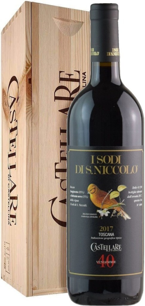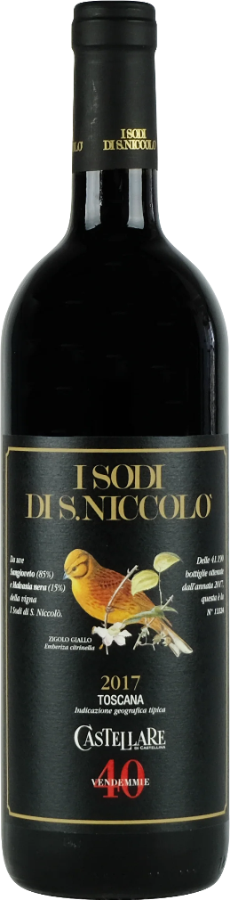 упертосканское вино "I Sodi di San Niccolo" — гордость и флагман винного хозяйства Castellare di Castellina, оно дважды входило в "Топ-100 лучших вин" от известного винного критика "Wine Spectator". Харизма, класс, сложность — это слова, которые лучшим образом описывают "И Соди ди Сан Николо". Вино производится из прекрасного купажа винограда сортов Санджовезе и Мальвазия Нера, что является доказательством того, что можно сделать вино мирового класса из автохтонных сортов, выращенных на виноградниках категории IGT в Тоскане. Виноградники расположены в скалистой местности на высоте 350-400 метров на известковых и глинистых почвах, богатых минералами. Все работы производятся только вручную, потому что в этом терруаре невозможно использовать механические средства. Возраст лоз составляет 30 лет. После ферментации вино выдерживается 24-30 месяцев во французских дубовых бочках, 50% из них — новые. После розлива вино созревает еще не менее 12 месяцев в бутылках. Потенциал хранения "И Соди ди Сан Николо" 2017 года превышает 20 лет.