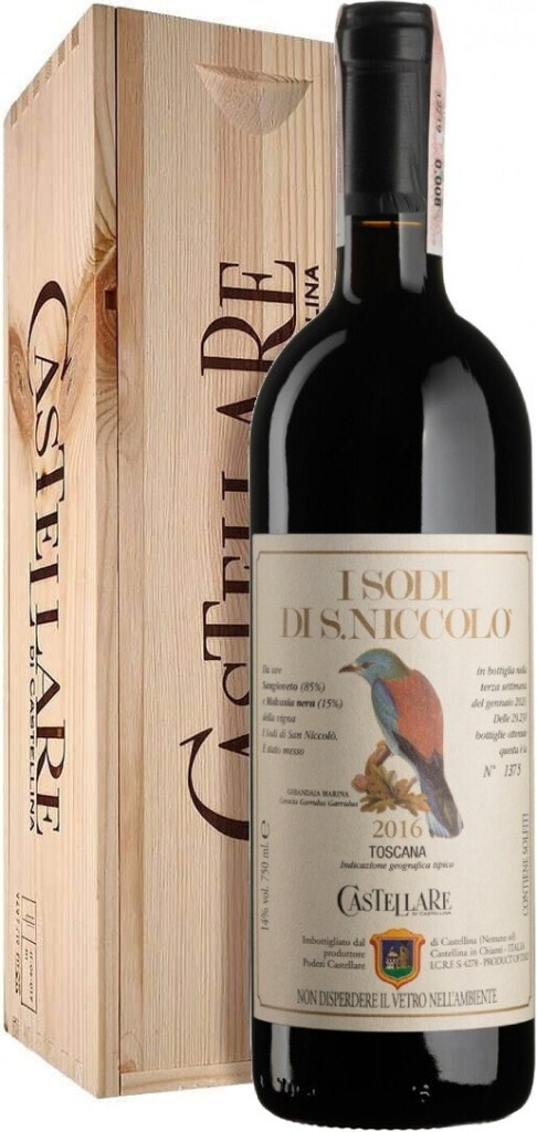 Супертосканское вино "I Sodi di San Niccolo" — гордость и флагман винного хозяйства Castellare di Castellina, оно дважды входило в "Топ-100 лучших вин" от известного винного критика "Wine Spectator". Харизма, класс, сложность — это слова, которые лучшим образом описывают "И Соди ди Сан Николо". Вино производится из прекрасного купажа винограда сортов Санджовезе и Мальвазия Нера, что является доказательством того, что можно сделать вино мирового класса из автохтонных сортов, выращенных на виноградниках категории IGT в Тоскане. Виноградники расположены в скалистой местности на высоте 350-400 метров на известковых и глинистых почвах, богатых минералами. Все работы производятся только вручную, потому что в этом терруаре невозможно использовать механические средства. Возраст лоз составляет 25-30 лет. После ферментации вино выдерживается 24-30 месяцев во французских дубовых бочках, 50% из них — новые. После розлива вино созревает еще не менее 12 месяцев в бутылках. Потенциал хранения "И Соди ди Сан Николо" 2016 года превышает 20 лет.