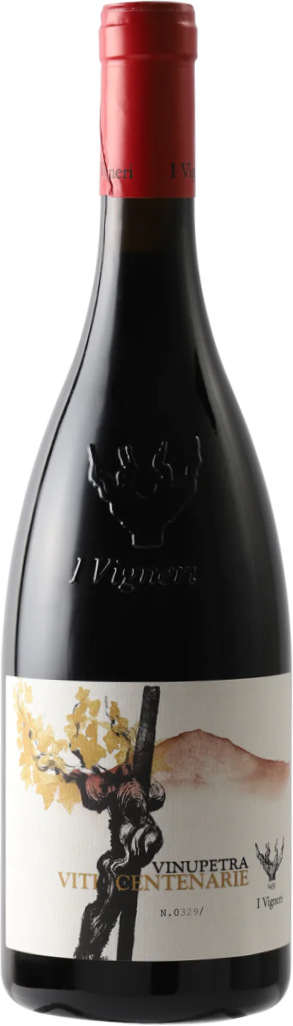 I Vigneri di Salvo Foti, Vinupetra, Viti Centenarie — одно из лучших вин от легенды виноградарства Этны, Сальво Фоти, которое цепляет своей силой, глубиной и впечатляюще продолжительным послевкусием. Несравненный фейерверк из столь же огненной Сицилии! Купаж вина составляет виноград сортов Нерелло Маскалезе, Нерелло Каппуччио и Гарнача, выращенный на винограднике компании "Calderara" в коммуне Кастильоне-ди-Сицилия. Виноградник расположен на высоте 580 метров над уровнем моря на северном склоне горы Этна, действующего вулкана. Виноградные лозы возрастом более 100 лет культивируются на каменистой вулканической почве, что отображено в названии вина, поскольку "Vinupetra" на сицилийском диалекте означает "вино, произведенное на почве, полной камней". Все работы на винограднике осуществляются вручную, используются только медь и сера при необходимости.