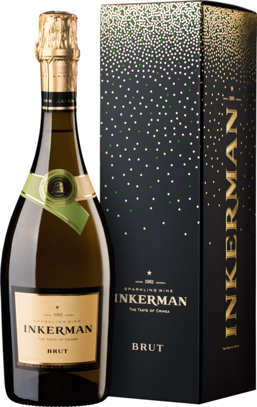Inkerman, Brut — белое сухое игристое вино, созданное из винограда сортов Шардоне, Ркацители и Рислинг, выращенного в Крыму и впитавшего щедрость теплого солнца и свежесть морского бриза. Виноградники принадлежат непосредственно компании Inkerman International. Вся линейка игристых вин компании Инкерман производится по резервуарной технологии — методу Шарма, когда вино подвергается вторичной ферментации в специальных крупных резервуарах, а затем под давлением разливается по бутылкам.