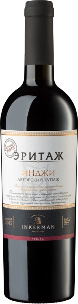 Инкерман, Эритаж, Инджи Авторский Купаж — красное сухое вино из линейки "Эритаж", созданное виноделами завода "Инкерман" из винограда сортов Каберне Совиньон и Саперави. Ягоды выращены на лучших виноградниках компании, расположенных на территории Севастопольского края. Изготовление вина основывается на принципах классического виноделия. После сбора урожая виноград проходит ферментацию в стальных резервуарах при строго контролируемой температуре, каждый сорт ферментируется отдельно. Благодаря выдержке в разных бочках с различными сроками, конечный купаж привлекает своими характеристиками с первых секунд.