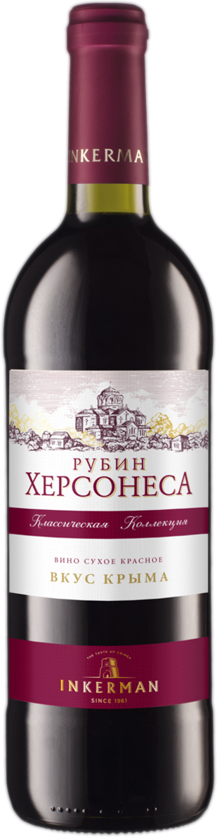 Инкерман, Рубин Херсонеса — ординарное красное сухое вино, ценящееся не только за свой великолепный вкус, но и за комплекс полезных свойств, присущих красным сухим винам. Вино создается из винограда сортов Саперави, Мерло и Бастардо Магарачский, которые выращиваются в Крыму. Вино выдерживается в дубовых бочках 6 месяцев. "Ruby of Chersones" обладает элегантным характером, который раскрывается в его сбалансированном вкусе и сложном аромате. На этикетке вина изображен Владимирский собор, располагающийся на территории заповедника Херсонес, являющийся не только православной святыней, но и храмом-памятником, гордостью Севастополя.
