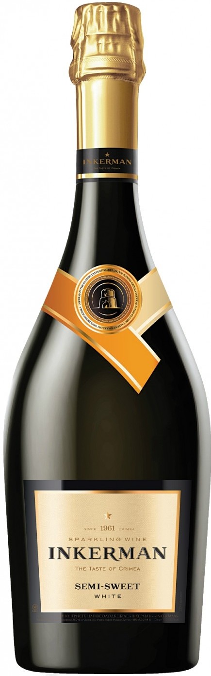 Inkerman, White Semi-Sweet — белое игристое вино, созданное из винограда сортов Шардоне, Ркацители и Рислинг, выращенного в Крыму и впитавшего щедрость теплого солнца и свежесть морского бриза. Виноградники принадлежат непосредственно компании Inkerman International. Вся линейка игристых вин "Инкерман" производится по резервуарной технологии — методу Шарма, когда вино подвергается вторичной ферментации в специальных крупных резервуарах, а затем под давлением разливается по бутылкам.