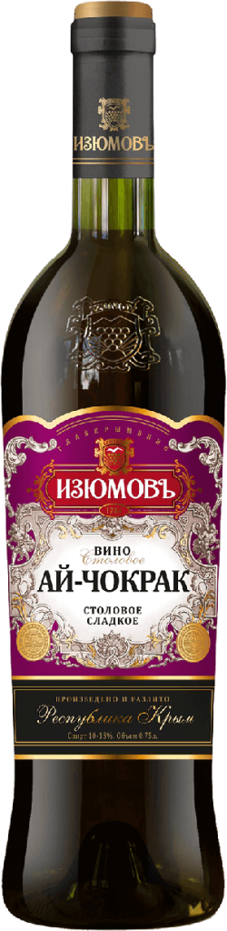 Изюмовъ, Ай-Чокрак — столовое вино, которое создают из красного сорта Бастардо, выращенного под щедрым крымским солнцем. Юг Крыма всегда славился своими виноградниками, а идеальный для вегетации микроклимат способствует развитию виноделия в этом регионе уже много столетий. Современные вина от Винодельческой компании Изюмовъ продолжают многовековую традицию создания качественных вин.