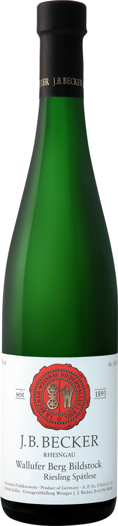 J. B. Becker, "Wallufer Berg Bildstock" Riesling Spatlese — удивительно свежее органическое белое сухое вино из винограда сорта Рислинг, который выращивается на винограднике "Берг Бильдшток" площадью в 5 га с лессово-глинистой почвой. Возраст лоз колеблется от 25 до 40 лет. Урожай собирается вручную и мягко прессуется. После двенадцатичасовой мацерации начинается спонтанная ферментация в больших бочках из немецкого дуба при контролируемой температуре. Продолжительность и температура брожения определяются на месте. Затем вино выдерживается в бочках из немецкого дуба объемом в 1200 и 2400 литров в течение 10 месяцев. После розлива по бутылкам вино еще полгода дозревает в подвалах винодельни. Объем выпуска вина не превышает 3000 бутылок.