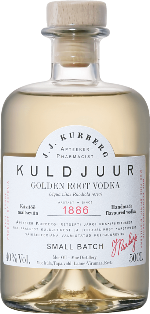 J.J. Kurberg, Golden Root — органический крепкий спиртной напиток, изготовленный вручную по старинному рецепту из этилового спирта наивысшей очистки и настоя золотого корня (родиола розовая). Родиола розовая издавна использовалась в медицине для улучшения физического и умственного здоровья. Напиток назван в честь фармацевта Якоба Курберга, который в 1886 году купил поместье Muddis и превратил его в современный завод.