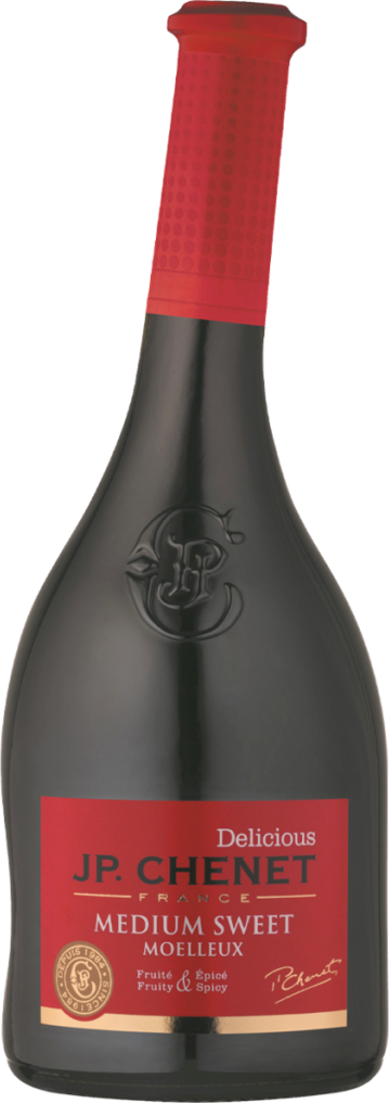 J.P. Chenet, "Delicious" Medium Sweet Rouge — красное полусладкое вино, созданное из винограда сортов Гренаш, Сира и Кариньяно, выращенного в регионе Лангедок. Зона Пэй д'Ок простирается на 4 департамента Лангедок-Руссильона. Залитые солнцем виноградники дают ароматные, богатые вина. Именно на этом терруаре, крупнейшем в Европе, производятся лучшие красные и розовые вина J. P. Chenet. Сочетание различных техник виноделия с мацерацией в течение нескольких недель позволяет создать сложное и одновременно понятное потребителю вино. Часть урожая винифицируется при высокой температуре, остальной виноград ферментируется по традиционной технологии в бочках в течение 5 дней. Затем вино выдерживают в цистернах из нержавеющей стали в атмосфере инертного газа.