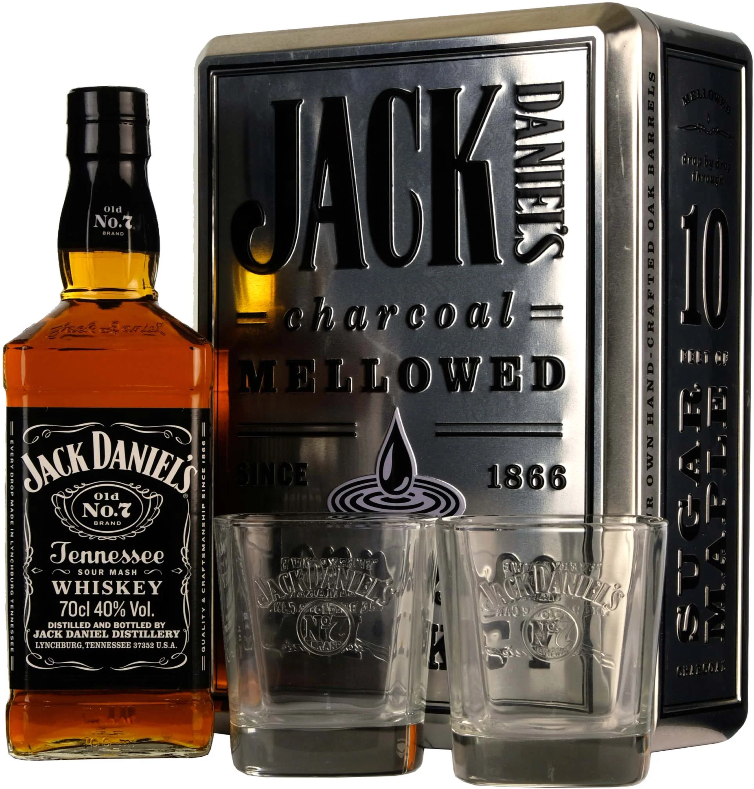 Jack Daniel's №7, with 2 glasses, in metall box, 0.7 л.
