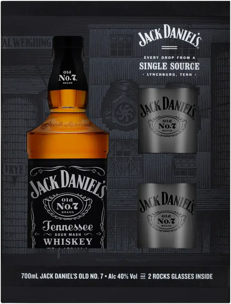 Jack Daniel's №7, with 2 glasses, in gift box, 0.7 л.
