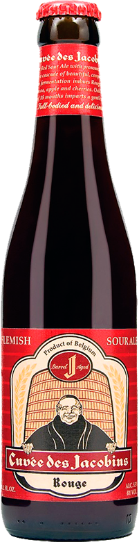 Cuvee des Jacobins, Rouge — это фламандский эль красного цвета с заманчивым балансом солодовой сладости и яркой кислотности. Этот натуральный ламбик изготовлен по методу спонтанной ферментации из ячменного солода, хмеля, сахара и воды и выдержан как минимум 18 месяцев в дубовых больших дубовых бочках, сделанных во Франции, а собранных в Бокор. "Кюве де Жакобан" имеет уникальный для пива срок хранения — от 10 до 20 лет и даже больше, причем вкус его может пройти значительную эволюцию во время хранения.
