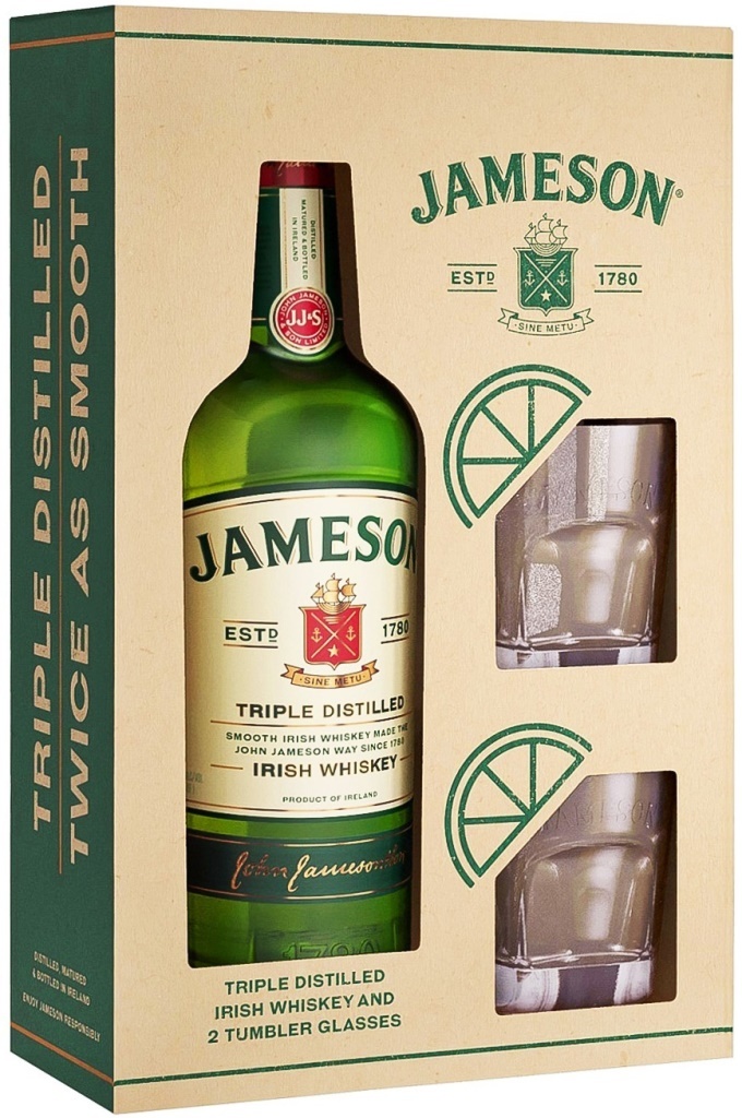 Виски Jameson, with 2 glasses in gift box, 0.7 л.