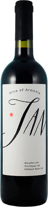 Jan Red Dry — красное сухое вино с приятным ароматом и насыщенным, хорошо структурированным вкусом. Вино изготавливается из винограда сортов Пти Вердо, Мерло и Каберне Фран, выращенного на высокогорных виноградниках Араратской равнины, у подножия Арарата, на вулканических почвах. Собранный урожай подвергается холодной мацерации, ферментации при температуре 26-28 °С в течение 20 дней и яблочно-молочному брожению в стальных резервуарах. Красное вино "Джан" прекрасно сочетается с любыми холодными и горячими мясными блюдами.