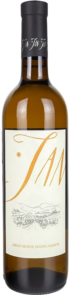 Jan, White Semi Sweet — белое полусладкое вино, достаточно простое, питкое, гастрономичное и очень приятное. Вино изготавливается из винограда сортов Кангун и Воскеат, выращенного на высокогорных виноградниках Араратской равнины, у подножия Арарата, на вулканических почвах. Собранный урожай дробится, муст проходит декантацию в течение суток. Последующая ферментация в стальных резервуарах при температуре 14-16°С длится 20 дней. Белое вино "Джан" составит хорошее сочетание с блюдами из рыбы, белого мяса, мяса цыпленка, овощами, прекрасно подойдет для пикника.