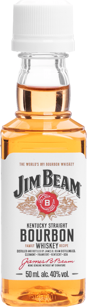 Jim Beam — бурбон №1 в мире! Ежегодно по всему миру выпивается свыше 40 миллионов литров этого изумительного напитка. Это настоящий виски, получивший повсеместное признание благодаря своему отменному качеству и веселому характеру. Не менее 51% сусла, по принятым стандартам, создается из кукурузы. "Джим Бим" выдерживают в течение 4-х лет в новых обугленных бочках, сделанных из древесины белого дуба.