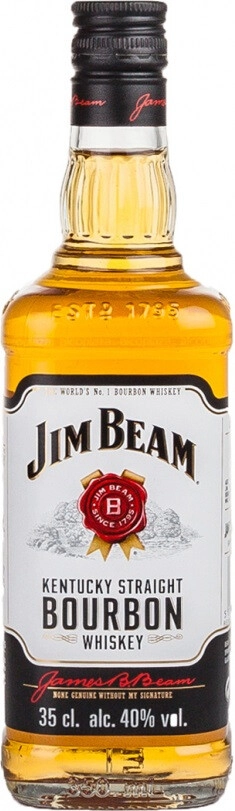 Jim Beam — бурбон №1 в мире! Ежегодно по всему миру выпивается свыше 40 миллионов литров этого изумительного напитка. Это настоящий виски, получивший повсеместное признание благодаря своему отменному качеству и веселому характеру. Не менее 51% сусла, по принятым стандартам, создается из кукурузы. "Джим Бим" выдерживают в течение 4-х лет в новых обугленных бочках, сделанных из древесины белого дуба.