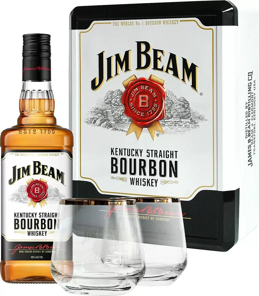 Набор, состоящий из одной бутылки виски "Jim Beam" объемом 700 мл и двух стаканов, станет отличным презентом близкому человеку, сотруднику или другу.