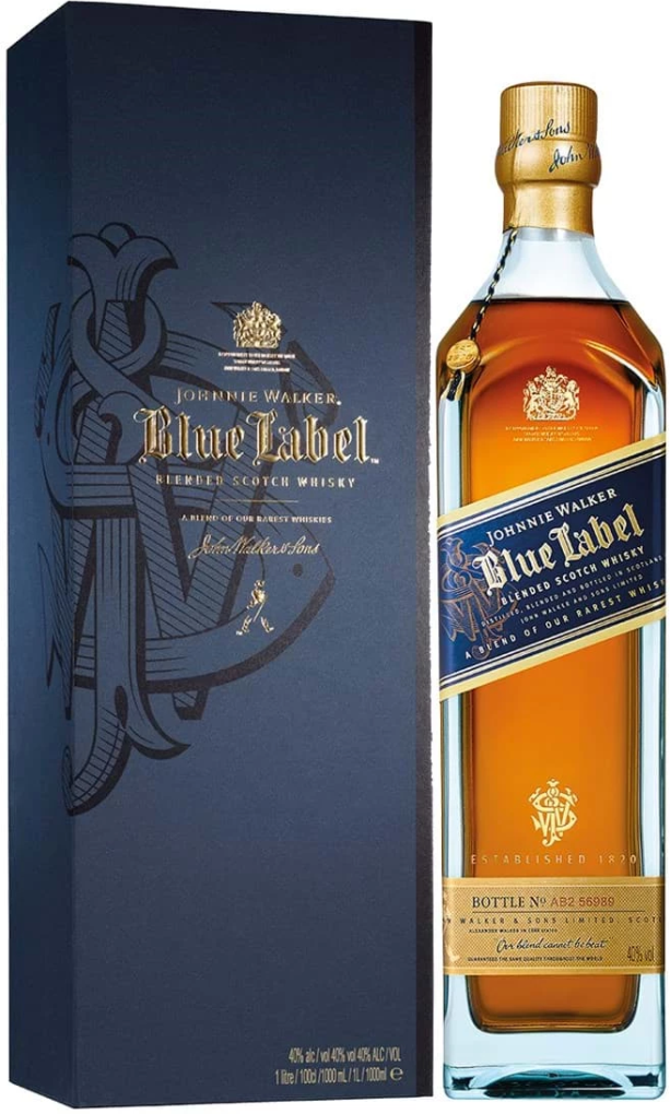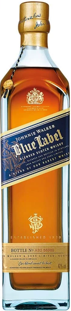 Эксклюзивный виски от Джонни Уокер "Блю Лэйбл" представляет собой купаж из 16 сортов односолодовых виски — наиболее дорогих и редких, минимальная выдержка которых составляет 25 лет, а возраст некоторых достигает и 60 лет. Эксклюзивность этого напитка определяется его высокой стоимостью и ограниченным объемом выпуска. В связи с этим все бутылки "Блю Лэйбл" имеют индивидуальный номер, только при наличии которого можно быть уверенным в подлинности виски. Бутылка имеет изящную форму, подобную тем, что изготавливались в XIX веке. По богатству вкуса виски также приближен к традиционным напиткам Джонни Уокер 19-го столетия. Этот напиток предназначен для самых больших и особенных торжественных случаев.