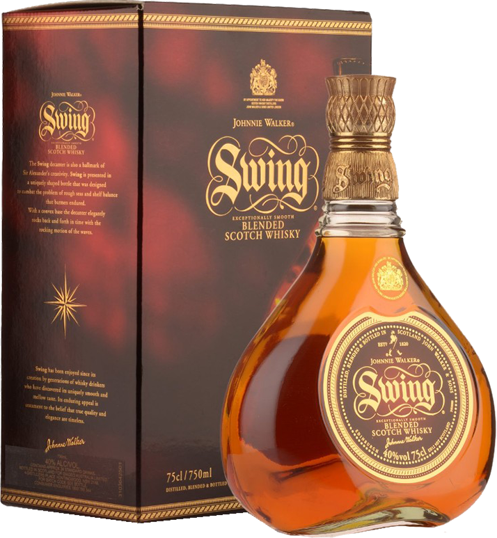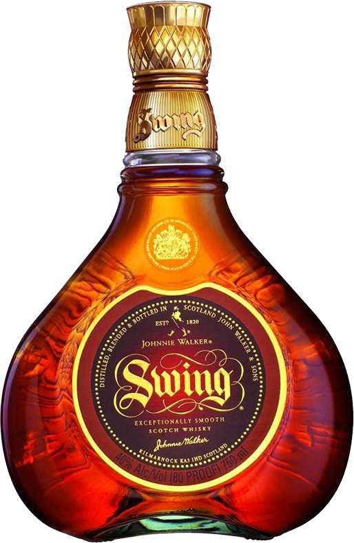 Johnnie Walker Swing представляет собой редкий виски, получивший свое название благодаря уникальной форме бутылок, в которые он разливается. Идея их создания появилась во времена трансатлантических путешествий. Тогда круизные лайнеры по всему миру развозили представителей высшего общества. Дабы бутылки не падали при качке, их дно было сделано выпуклым, в результате чего они только немного раскачивались. Виски Johnnie Walker Swing имеет цвет старого золота, а его вкус отличается мягкостью и сбалансированностью, обладает дубовыми, пряными и фруктовыми тонами, гармонично дополняющимися тонами дыма.