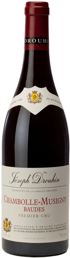 Chambolle-Musigny Premier Cru "Baudes" — красное вино, которое станет достойным украшением праздничного стола. Виноград для этого вина выращивается в деревне Шамболь-Мюзиньи на древнем винограднике "Baudes" (от немецкого "baud" — "скорость"). Название деревни Шамболь, вероятно, происходит от кельтского "cambola", эта местность славилась своими виноградниками в галло-римские времена, а в Средние века их возделывали монахи. Жозеф Друэн владеет в Шамболь несколькими участками. Известняковая почва виноградника, покоящаяся на отложениях юрского периода, идеально подходит для выращивания Пино Нуар. Средний возраст лоз — 32 года. С 1990 года на участке Друэна используются только биодинамические методы возделывания. Урожай собирается вручную в небольшие открытые ящики, чтобы не повредить плоды. Виноград сортируется прямо на винограднике и, если есть необходимость, на винодельне. Мацерация и ферментация проходят при строго контролируемой температуре в течение 2-3 недель. Полный контроль над процессом винификации позволяет полностью извлечь цвет и вкус винограда, но никогда не вредит и не мешает создать утонченное вино с типичным сортовым характером. После ферментации сусло прессуется. Выдержка вина во французских дубовых бочках (20% — новых) длится от 14 до 18 месяцев. Потенциал хранения вина составляет от 8 до 25 лет.